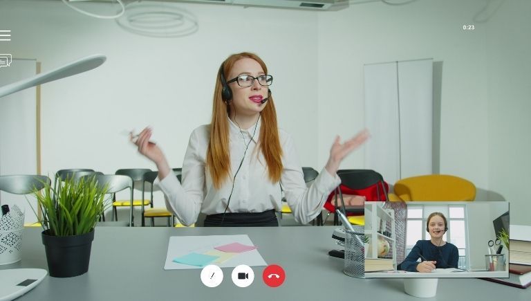 EnglishTEacherPRO utiliza un espacio virtual con aplicaciones como Zoom o Google meet para ofrecer cursos de inglés online tanto a empresas, como a profesionales, familias, niños y estudiantes.